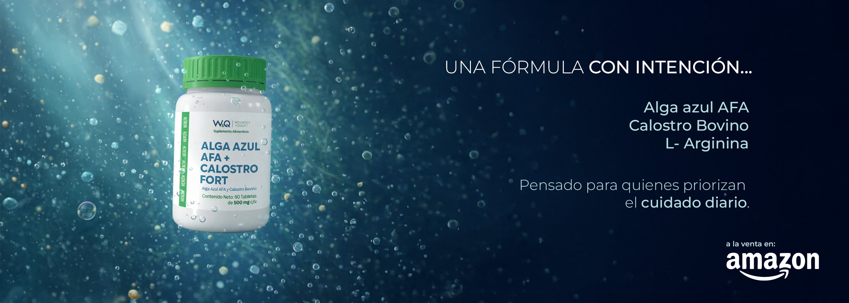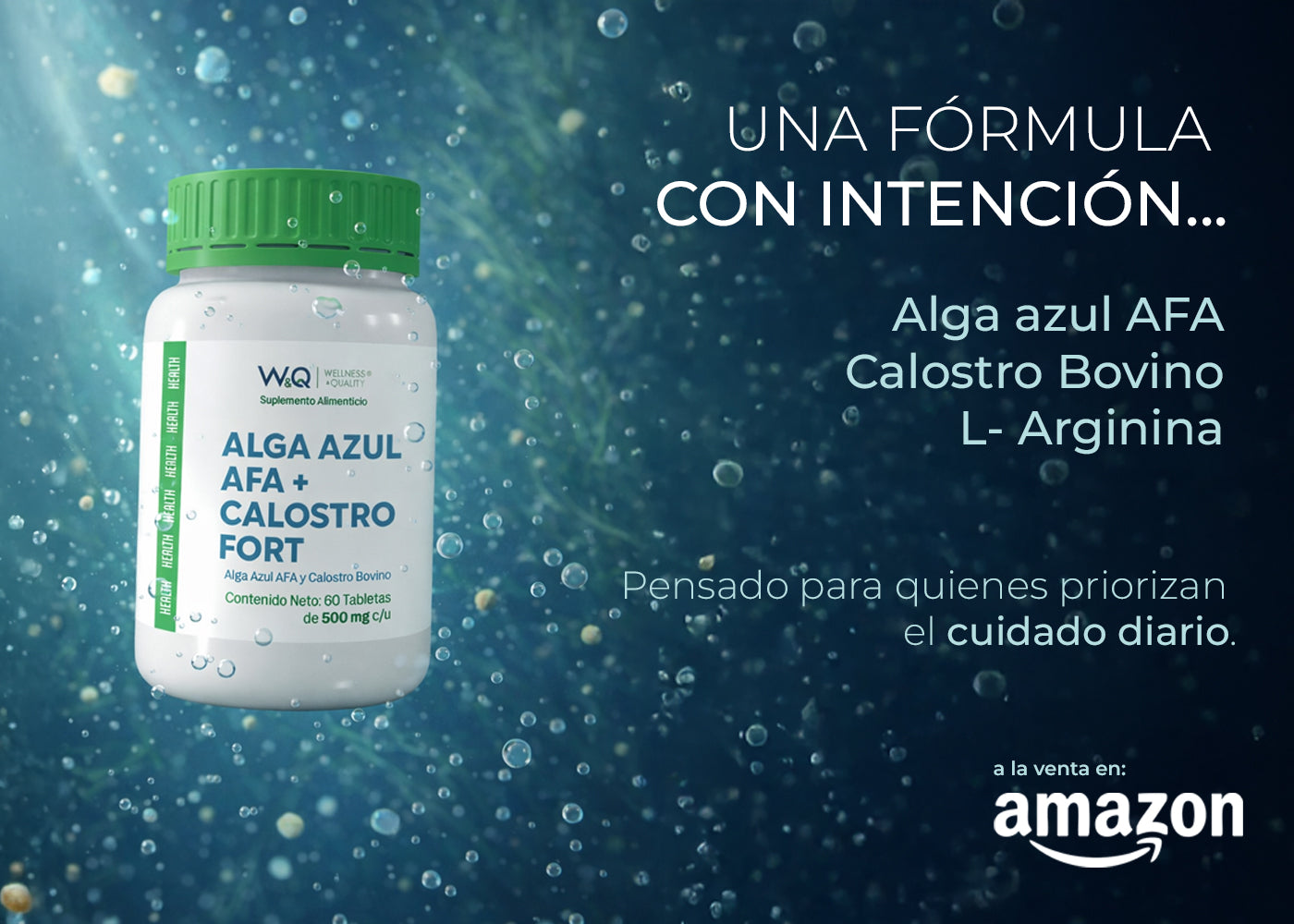 W&Q Health, Alga Azul AFA + Calostro Fort con L-Arginina, 60 Tabletas 1000 mg por porción.