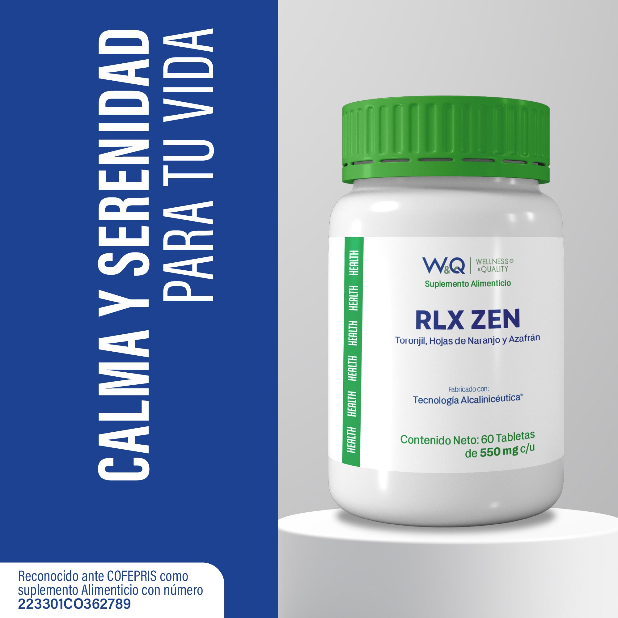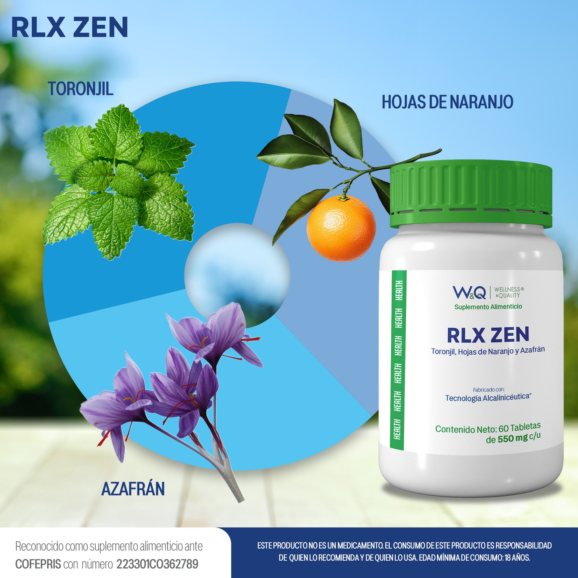 W&Q Health, Rlx Zen con Toronjil, Azafrán y Hoja de Naranjo, 60 Tabletas 1100 mg por porción.