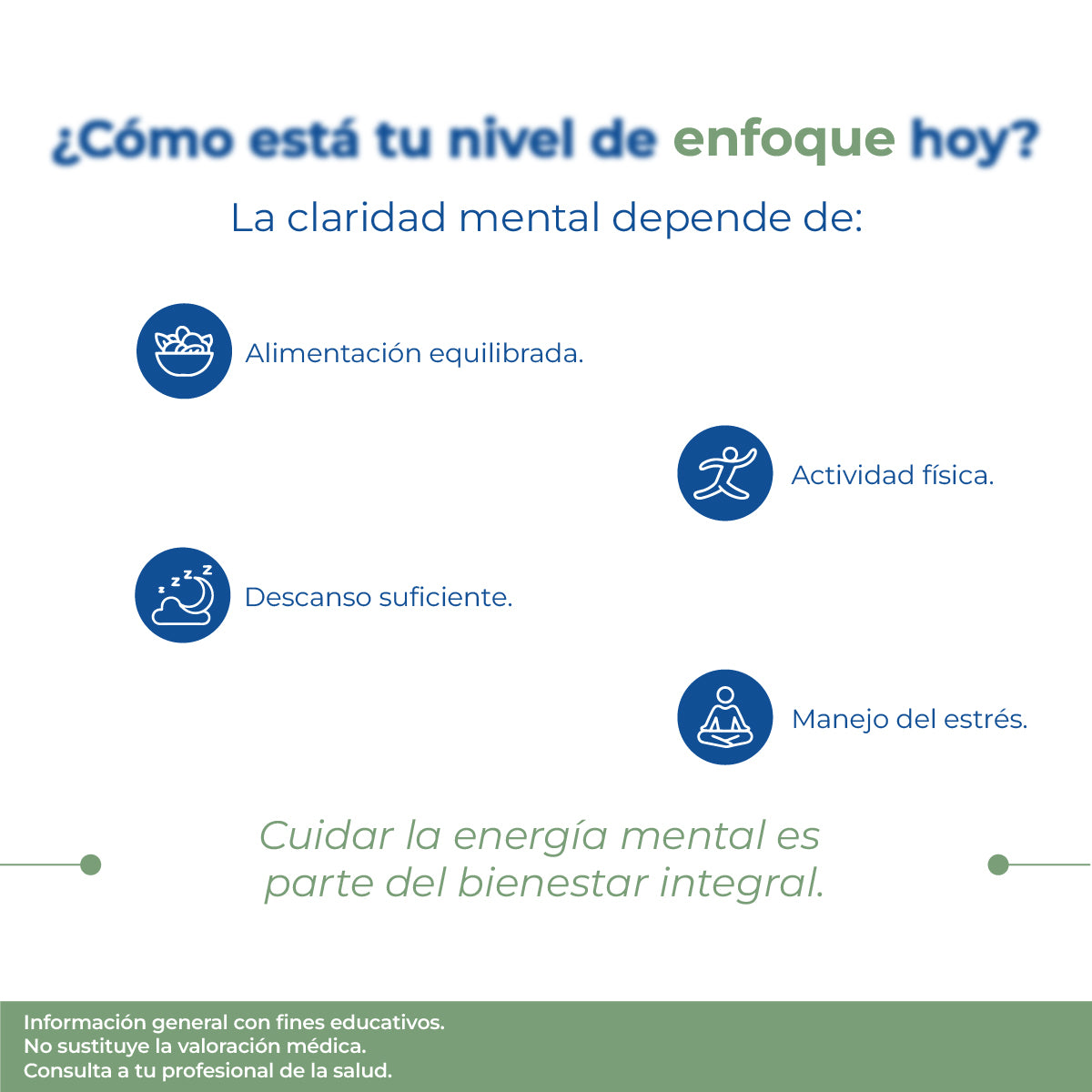 -Enfoque en energía y concentración dentro de un estilo de vida equilibrado.